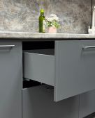 Качественная, красивая и удобная кухня создает в квартире атмосферу уюта и тепла. При этом она должна быть функциональной и практичной. Знакомьтесь, «Фьюжн» — отличное решение для вашего дома. Думаете о том, какого размера кухня лучше всего подойдет для квартиры или частного дома? Никаких компромиссов. Наполните ее модулями, какими захотите: двойные или тройные ящики, широкие или узкие, большие или маленькие. Нужно основание под встраиваемую посудомоечную машину и остается 15 см до стены? Поставьте туда бутылочницу. Вариантов комбинирования огромное количество. Фасады МДФ с кромкой ПВХ выглядят аккуратно. Создается эффект того, что каждый элемент гарнитура выделяется едва заметными контурами, что добавляет кухне шарм. К каждому шкафчику и ящику приятно притрагиваться, благодаря специальным покрытиям Acrylit (Акрилит) и ПЭТ.