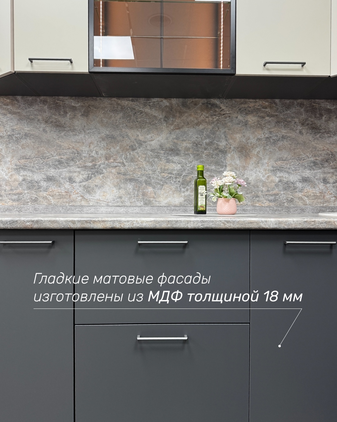 Качественная, красивая и удобная кухня создает в квартире атмосферу уюта и тепла. При этом она должна быть функциональной и практичной. Знакомьтесь, «Фьюжн» — отличное решение для вашего дома. Думаете о том, какого размера кухня лучше всего подойдет для квартиры или частного дома? Никаких компромиссов. Наполните ее модулями, какими захотите: двойные или тройные ящики, широкие или узкие, большие или маленькие. Нужно основание под встраиваемую посудомоечную машину и остается 15 см до стены? Поставьте туда бутылочницу. Вариантов комбинирования огромное количество. Фасады МДФ с кромкой ПВХ выглядят аккуратно. Создается эффект того, что каждый элемент гарнитура выделяется едва заметными контурами, что добавляет кухне шарм. К каждому шкафчику и ящику приятно притрагиваться, благодаря специальным покрытиям Acrylit (Акрилит) и ПЭТ.